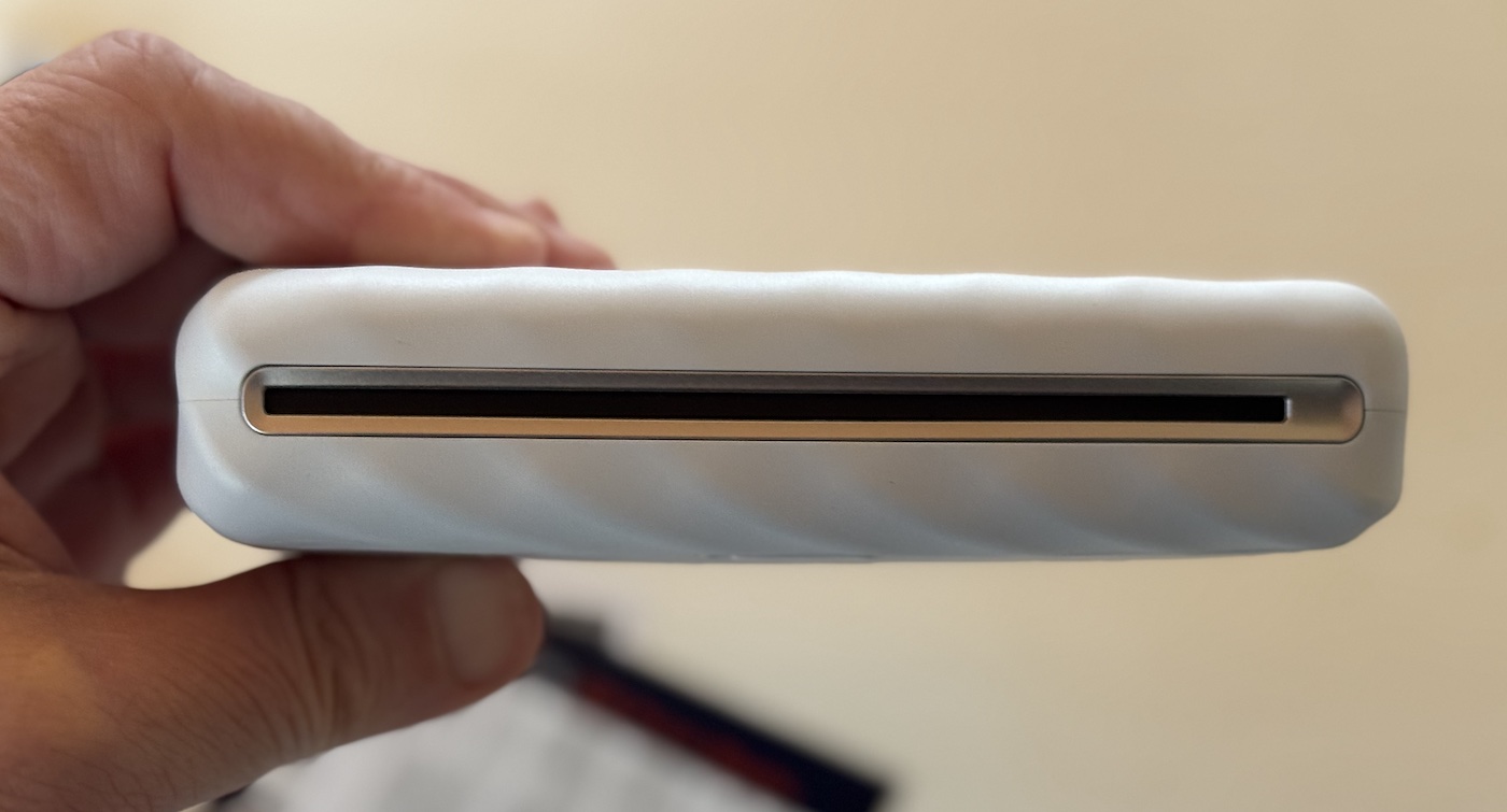 Dal punto di vista estetico, la Link WIDE mantiene un design sobrio e riconoscibile, in perfetto stile instax. Le linee sono morbide, senza spigoli marcati, e la finitura opaca della scocca contribuisce sia a limitare le impronte sia a dare una sensazione di maggiore robustezza rispetto a molte stampanti portatili concorrenti.