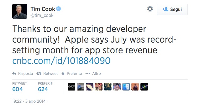Record di vendite su App Store a luglio. Cook: «Sviluppatori, grazie»