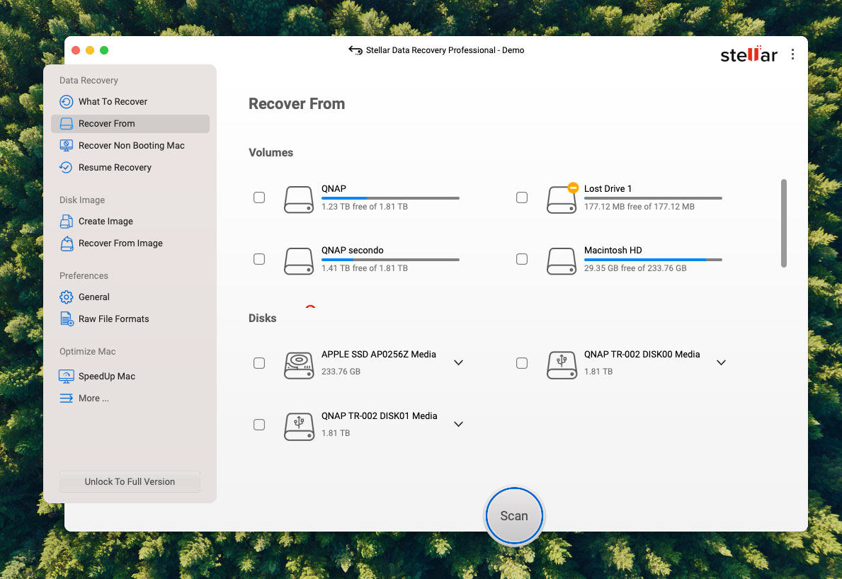 Dopo aver scaricato l’utility “StellarDataRecovery” per Mac, basta copiare quest’ultima nella cartella Applicazioni. Al primo avvio è richiesta la password dell’utente amministratore e bisogna concedere (dalle Preferenze / Impostazioni di Sistema) l’accesso completo ai volumi rimovibili, opzione fondamentale per consentire all’utility di analizzare drive, pennette USB, memorie, ecc.).