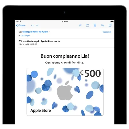 Questi buoni sono un’idea valida e pratica per fare un regalo gradito alle persone a noi più vicine anche all’ultimo minuto. Possono essere acquistate online direttamente da questa pagina del sito Apple con la consegna al destinatario tramite email: una soluzione perfetta che non perdere tempo con visite ai negozi e spostamenti, inoltre permette di fare regali direttamente dal nostro computer anche all’ultimo minuto.