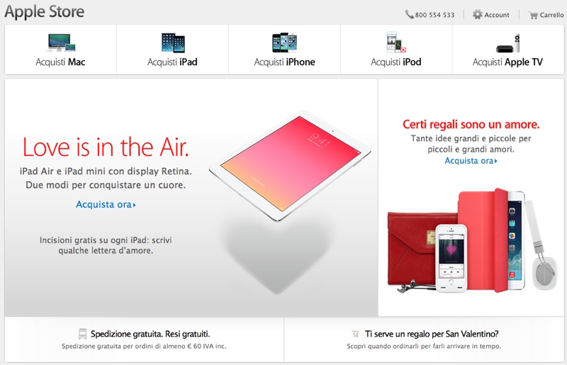 La vetrina dei regali di San Valentino è disponibile da questa pagina di Apple Store online.