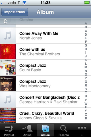 Fatto questo tutte le playlist, vide e filmati, audio libri e podcast, insomma proprio tutti i contenuti di iTunes sono alla portata del nostro dito sul piccolo schermo tascabile. L’interfaccia di controllo è molto simile a quella disponibile per le funzionalità iPod di iPhone. Controllo del volume, salto del brano, consultazione di Playlist e dell’intero archivio. A lato dell’elenco brani sono presenti anche le miniature delle copertine, ma solamente nel formato più piccolo dell’immagine e senza la possibilità di sfogliarle in modalità Cover Flow.