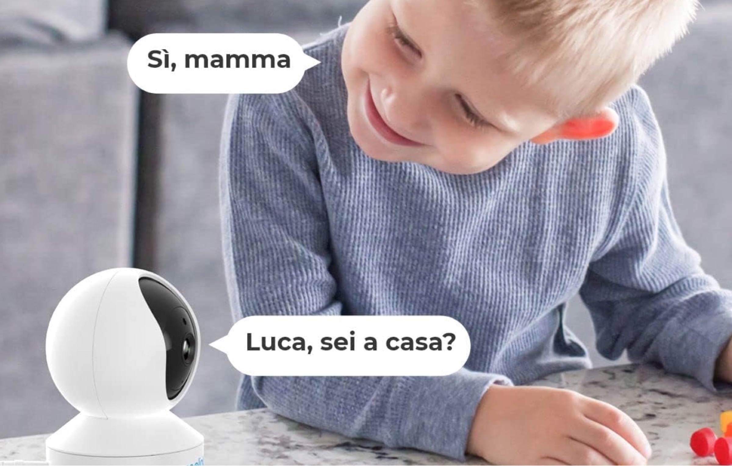 Questo modello invece è una telecamera di sicurezza per interni (49,99 €) con risoluzione Super HD a 4MP che può ruotare di 355° in orizzontale e 50° in verticale in modo da coprire l’intero ambiente in cui viene installata.