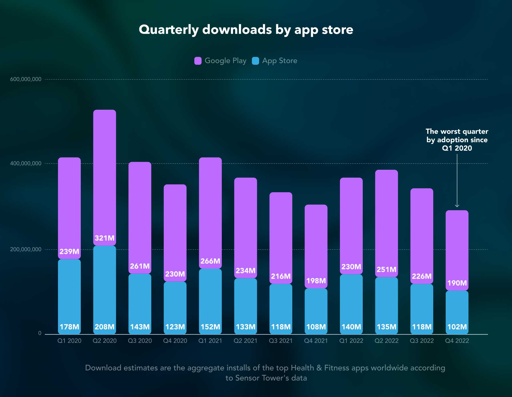 Secondo quando riferito in un recente report dall’agenzia di marketing delle prestazioni AdQuantum e dalla piattaforma di intelligence digitale e mobile Sensor Tower, il mercato delle app mobili di Health & Fitness ha assistito a un calo nel 2022. Tuttavia, il settore ha generato cifre da capogiro: ricavi per 1,7 miliardi, superando le aspettative e dimostrando la sua resilienza nonostante le avversità.