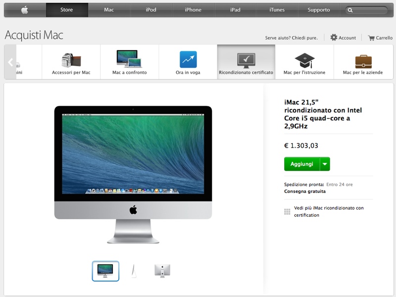 Ricordiamo che in tutti i casi si tratta di macchine di ultima generazione, rimesse a nuovo da Apple dal punto di vista estetico e funzionale, fornite con un anno di garanzia Apple. Tutti gli iMac e anche i portatili Apple ricondizionati sono disponibili a partire da questa pagina.