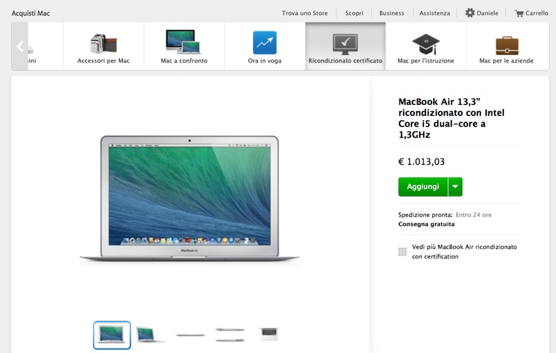 Nei ricondizionati Apple Store online una occasione da non lasciarsi scappare, sono disponibili infatti diversi MacBook Air di aprile 2014, quindi di ultima generazione con processori Intel Haswell migliorati a basso consumo, a partire da solamente 879 euro.