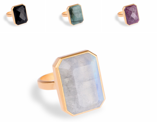Ringly è realizzato in oro 18 carati con pietre disponibili in onice nero, smeraldo, zaffiro rosa e pietra di luna arcobaleno. Christina Mercando, CEO e co fondatore di Ringly ha dichiarato che l’intento della società è quello di creare un prodotto che sia allo stesso tempo elegante e utile, tanto da rendere orgogliosa le donne che lo indossano.