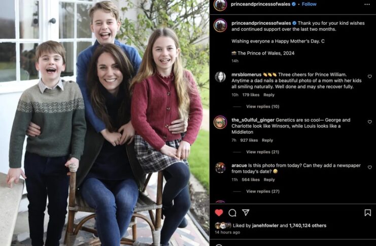 Se l’obiettivo era rassicurare il pubblico sulla salute della principessa del Galles, l’immagine ha fallito clamorosamente. Infatti la foto ha scatenato una tale polemica che lunedì mattina Kate Middleton in persona, autrice del ritocco, ha dovuto emettere delle scuse dall’account ufficiale su X del Principe e della Principessa del Galles.