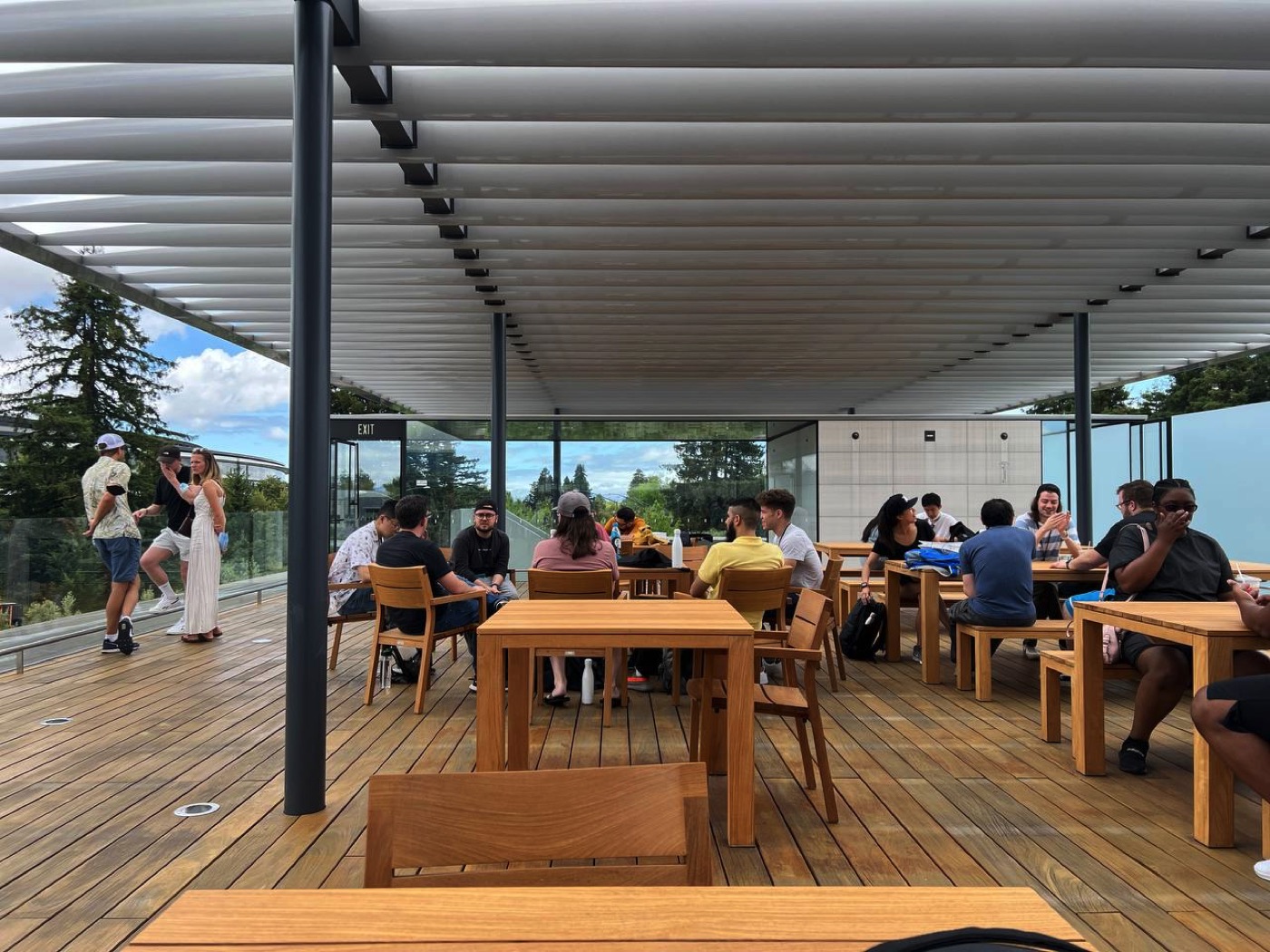 Non sembrano esserci i classici gadget degli scorsi ma possiamo sempre acquistare una maglietta che ricorda la nostra visita ad Apple Park. La nostra galleria si conclude con la vista del quartier generale di Apple dal terrazzo del Visitor Center.