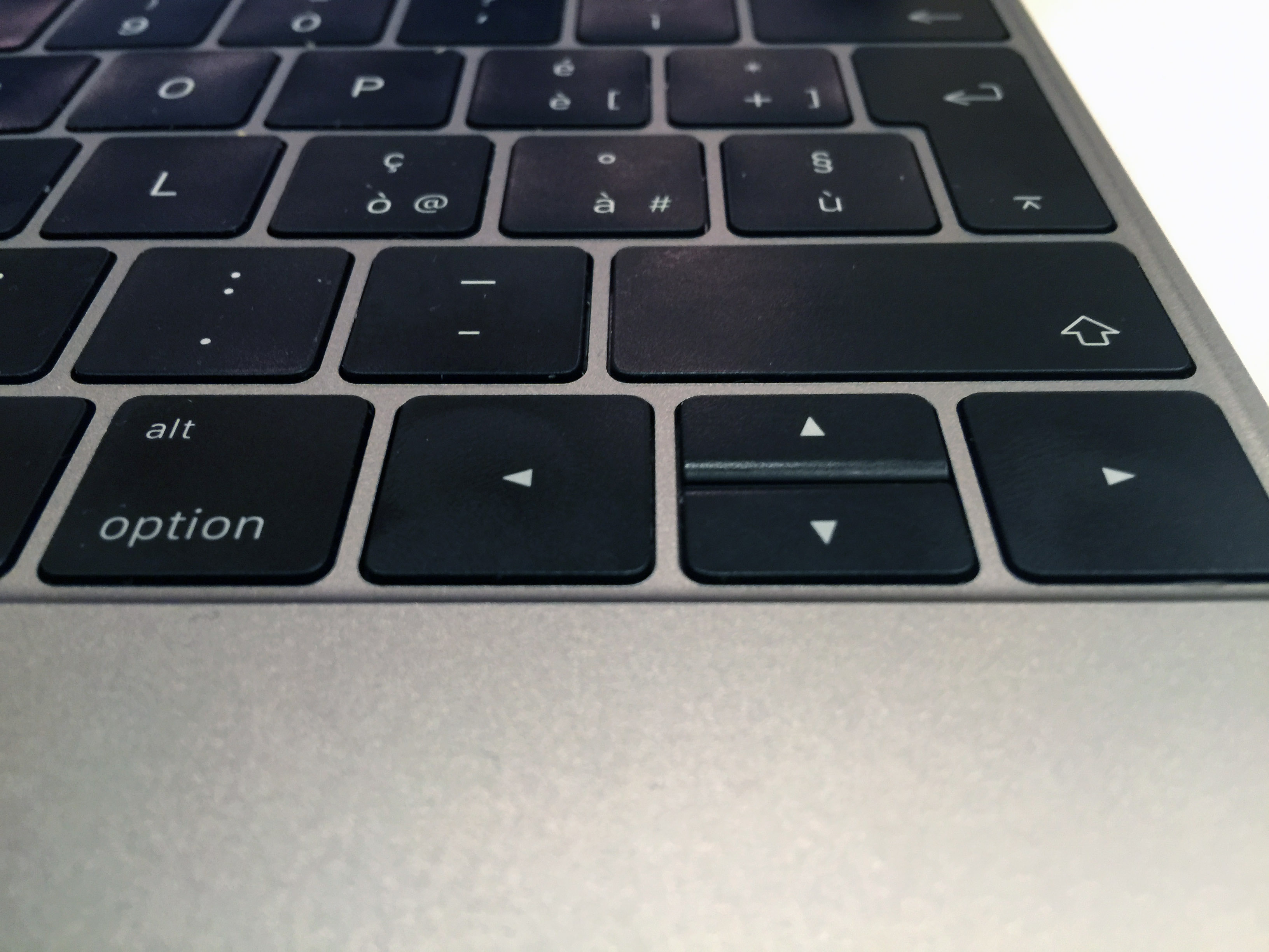 Il MacBook 12 presenta, accanto al nuovo trackpad (in comune con il MacBook Pro 13 già provato da Macity) anche la tastiera “a farfalla”. I tasti sono leggermente più grandi, rispetto al MacBook Air 11 arrivano sino al bordo della tastiera, hanno una escursione molto più breve e un nuovo sistema di illuminazione “tasto per tasto” molto più preciso, anziché un sistema con un unico filo in fibra ottica che “serpeggia” sotto tutta la tastiera creando una illuminazione nella parte vuota della lettera di ciascun tasto ma anche attorno alla sua base.