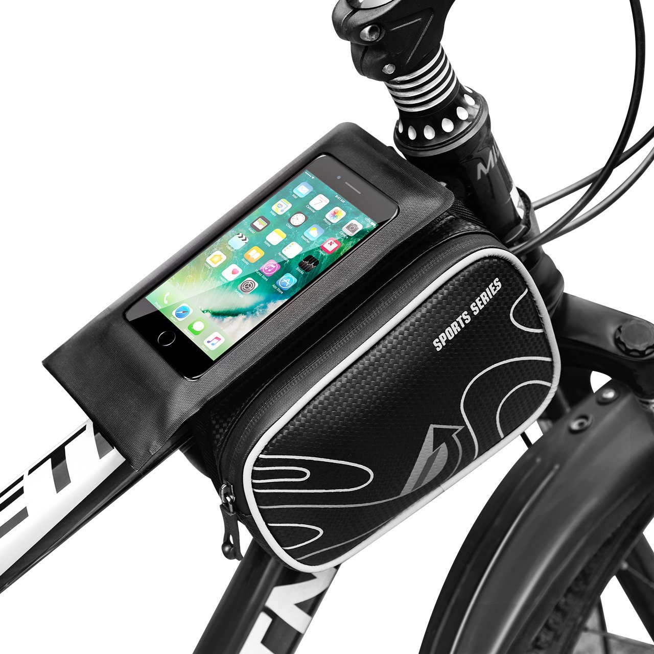 Se siete ciclisti abituali sicuramente quest’accessorio vi semplificherà il trasporto dei vostri oggetti essenziali durante le passeggiate o lo sport in bicicletta. È dotato di un due vani di buona capacità. chiusi da una zip, dove potete custodie chiavi, occhiali, documenti, portafogli o magari una camera d’aria e gli attrezzi per una riparazione rapida. Nella parte superiore si trova una piattaforma rimovibile (è applicata con un velcro) che custodisce in maniera sicura e protetto dalle intemperie, uno smartphone fino a 5,5 pollici. La comodità sta proprio nel fatto che una volta arrivati a destinazione o magari per un rapida sosta, il telefono si può rimuovere con facilità e rapidità.