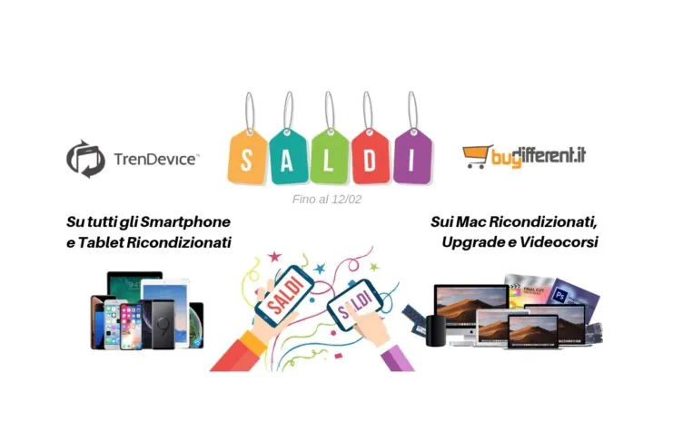 I Saldi su TrenDevice e BuyDifferent sono già iniziati: vi aspettano occasioni imperdibili su tutti gli Smartphone, Tablet e Mac Ricondizionati. Non perdete tempo perché le offerte terminano il 12 Febbraio, ma non aspettate l’ultimo momento perché, in ogni caso, sono solo fino ad esaurimento scorte.