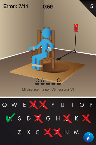 Infine per rendere meno monotono il gioco dell’impiccato possiamo addirittura sostituire pali di legno e cappio con una più moderna e raccapricciante sedia elettrica, ancora scegliere tra uomo e donna per la rappresentazione dello sfortunato sullo schermo.