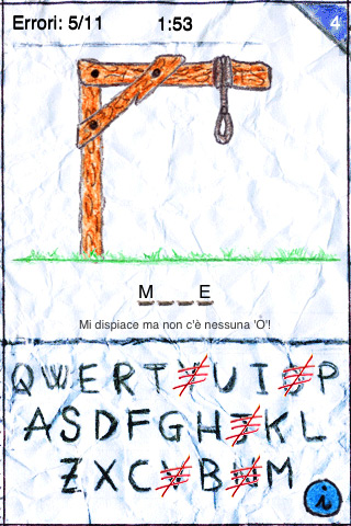 Un foglio di carta e una matita sono gli unici “requisiti di sistema” per poter divertirsi con lo storico gioco dell’impiccato: difficile incontrare una persona che non ci abbia mai fatto una partita. Da questo presupposto è senza dubbio partito anche lo sviluppatore del gioco Salvami per iPhone e touch che in sostanza è una versione digitale dello storico passatempo.