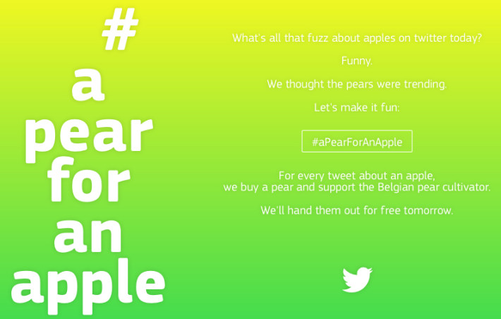 Anche Samsung, in qualche modo, doveva utilizzare l’evento Apple di ieri per farsi un po’ di pubblicità. Questa volta, però, non centrano gli sfottò. Ed infatti, per ogni tweet relativo ad Apple apparso in rete nelle 24 ore scorse, Samsung ha acquistato una pera in Belgio, da distribuire gratis oggi dinnanzi alla stazione ferroviaria di Bruxelles-Nord. Sembra la classica campagna ironica di Samsung contro la casa di Cupertino, ma a ben guardare, come sottolinea la redazione di Android Authority, la casa sud coreana vuole sostenere la crisi che sta colpendo gli agricoltori del Belgio proprio in questi giorni.
