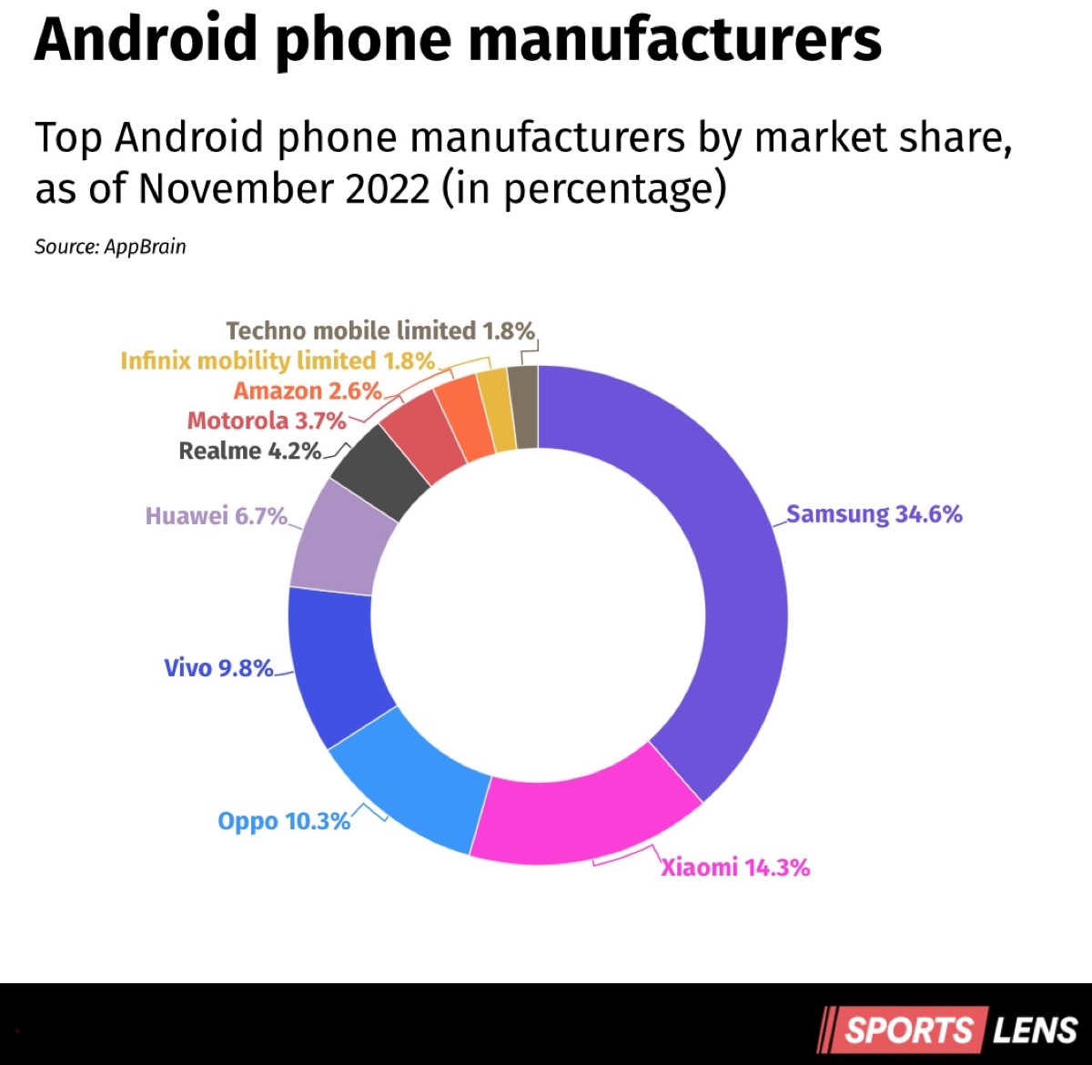 Le prime posizioni dei Galaxy sono una conferma del ruolo di leader di Samsung che da sempre controlla la quota di mercato maggioritaria del mercato Android, pari al 34,6% nel mese di novembre quest’anno. Lo scorso anno sono stati spediti oltre un miliardo di smartphone Android.
