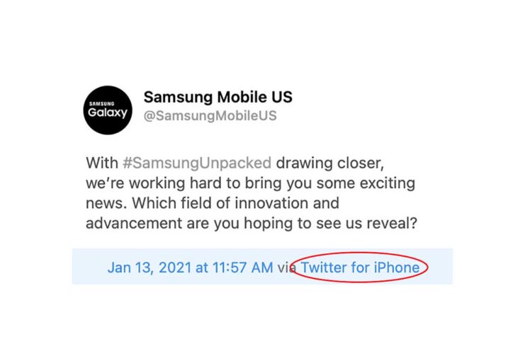Il 14 gennaio Samsung presenterà il Galaxy S21. L’approssimarsi dell’evento “Unpacked” è stato ricordato con un tweet scritto da un iPhone dalla divisione mobile USA dell’azienda sudcoreana.