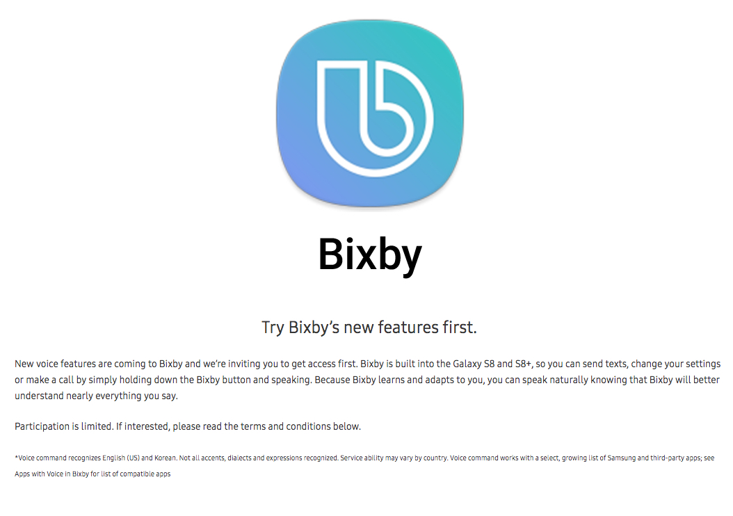 L’iscrizione può essere effettuata a partire da questo link diretto ma solo un numero limitato di persone riceverà l’accesso anticipato. Chi otterrà la possibilità di provare Bixby potrà verificare come funziona l’invio di un messaggio di testo, la modifica delle impostazioni o la possibilità di effettuare le telefonate