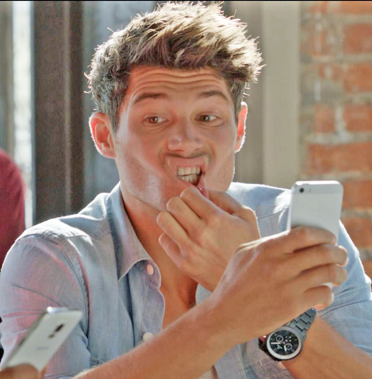 Nel finale, dopo un confronto tra i dispositivi (notare la schermata dell’utente iPhone concentrato da buon Nerd, su articoli di MacWorld mentre l’amico si bea con foto di spiagge bianche), mentre l’amico si allontana con il suo prezioso Galaxy all’orecchio lasciando il poco informato compagno a tormentarsi sugli errori compiuti sull’acquisto di un telefono palesemente inferiore, lo speaker dice: «tutto quello che stavate aspettando è già qui. Ma forse a voi piace aspettare».