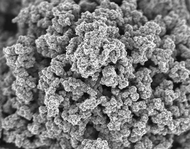 Vista ingrandita delle sfere di grafene sintetizzate per l'uso nelle batterie
