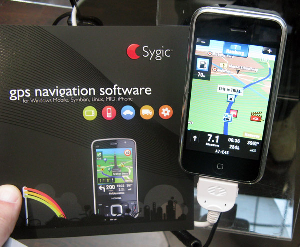 Dopo la dimostrazione “live” al GSMA di Barcellona Sygic, l’azienda di Bratislava che collabora con TeleAtlas per portare la navigazione assistita in GPS su un vasto numero di piattaforme (PDA, PND, SmarthPhone, Symbian, CarPC) aveva mostrato anche al CeBIT una demo funzionante del suo software per iPhone.