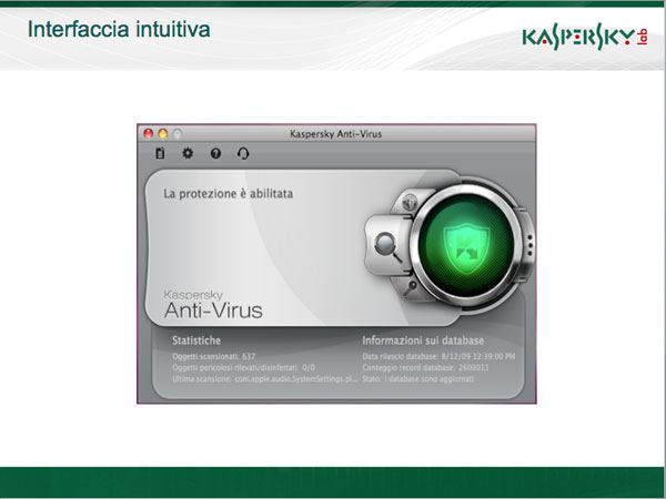 “Il collaudato software Kaspersky – ha detto ancora a Macitynet Alexander Moiseev – è stato completamente rivisto per quanto riguarda l’interfaccia grafica, in modo da renderla più facile e più amichevole da utilizzare e, aspetto non secondario per gli utenti della Mela, con uno stile grafico e di impostazione in linea con Mac OS X”
