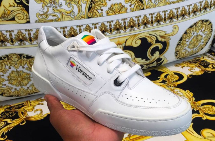 Stiamo parlando di un’azienda di moda e abbigliamento come Versace: a quanto pare uno dei suoi designer ha pensato di riprodurre un paio di scarpe Apple da tennis con sopra lo storico logo colorato di Apple.