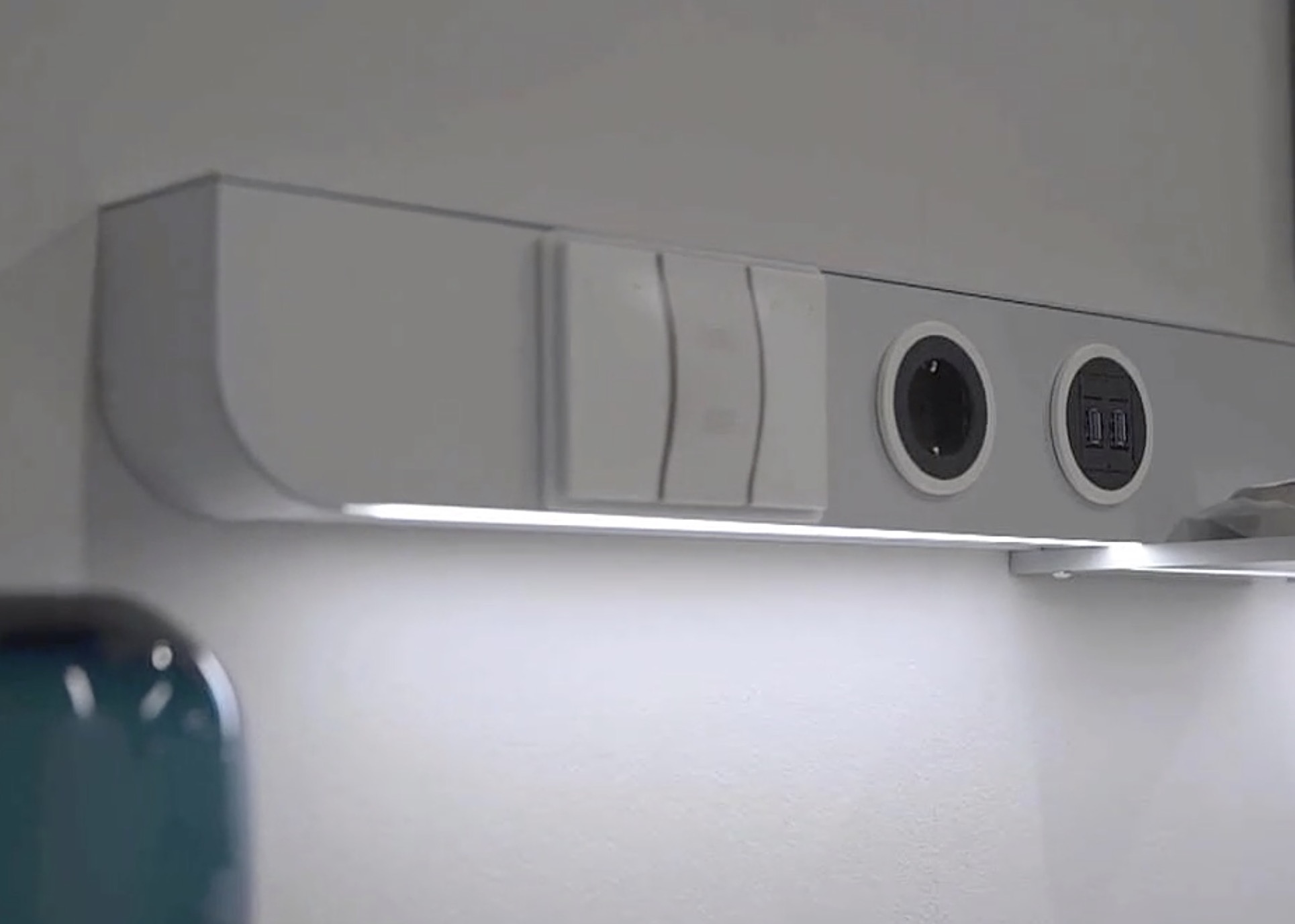 La task bar è l’elemento più strettamente “smart home” che regge carrelli per oggetti ed accessori che traghetta Dandy in Dandy Plus, un ponte verso il contemporaneo. All’interno troviamo lo speaker Alexa incluso nel sistema Living Now di Bticino, le prese di corrente le prese USB all’interno di un ricettacolo colorato negli stessi accenti della cucina. La task bar ha una sua illuminazione LED e accende le luci di casa, il forno e, ovviamente fornisce le notizie e le risposte classiche degli speaker intelligenti di Amazon.