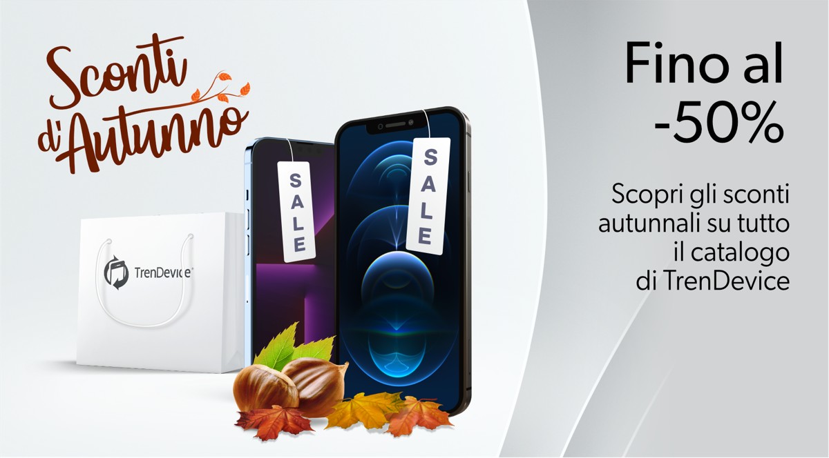 Ottobre è il mese delle grandi offerte su TrenDevice: su tutto il catalogo prezzi ribassati fino ad esaurimento disponibilità. Con gli sconti fino al -50% su iPhone, iPad e Mac troverete sicuramente l’occasione che stavate cercando, e potete pagare il dispositivo anche in 3 comode rate mensili a tasso zero, senza alcuna commissione. Visitate subito la pagina dedicata agli Sconti d’autunno e scoprite gli iPhone e iPad più scontati di oggi, i Mac in offerta limitata e tante altre occasioni da non perdere.