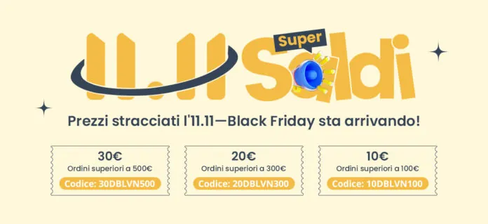 - Su acquisti da 500 €, lo sconto è di 30 € con il codice 30DBLVN500