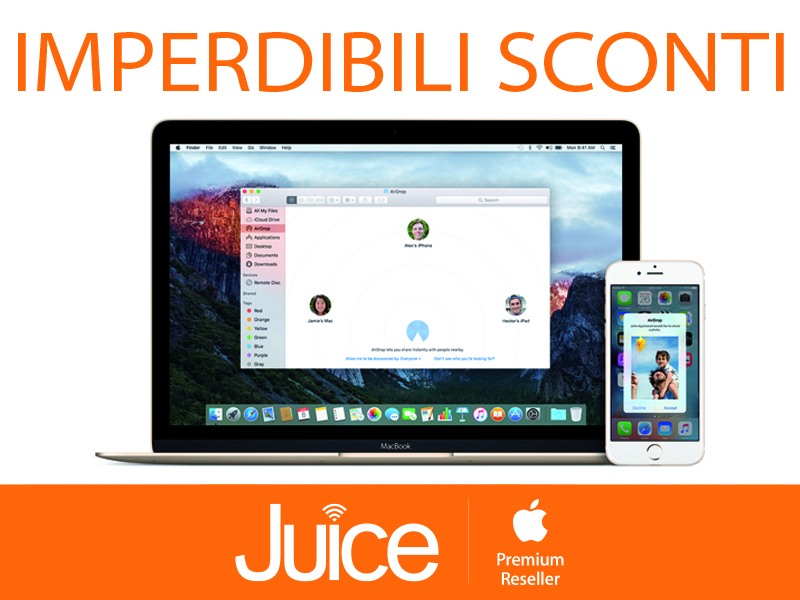 Grazie agli sconti estivi Juice è possibile partire per le vacanze con il nuovo Mac o iPhone risparmiando. A partire da oggi tutti i Mac sono proposti con uno sconto di 100 euro sul prezzo di listino. Così per esempio MacBook Air 13,3” da 1.179 euro, con Intel Core i5 dual core da 1,6 GHz, 8 GB di memoria RAM e SSD da 128 GB costa 1.079 euro.