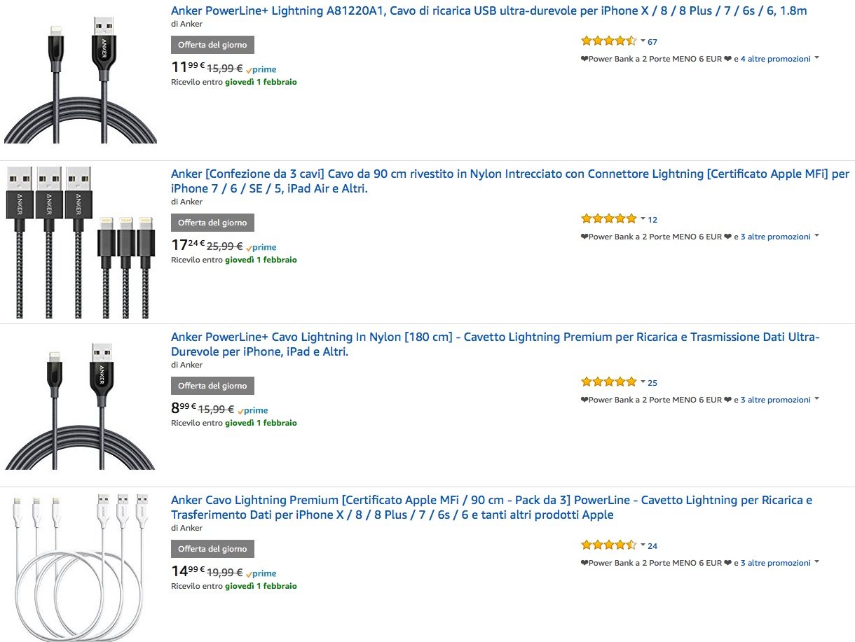 Se siete a caccia di cavi Lightning per sostituire uno vecchio oppure per avere più punti di ricarica e sincronizzazione, ecco la soluzione: una offerta speciale valida solo per oggi, sui cavi di Anker, tutti certificati da Apple, con prezzi che partono da 8,99 euro.