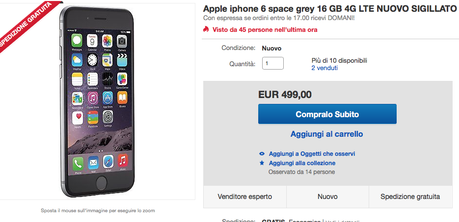 - Click qui per comprare iPhone 6 16 GB grigio siderale a 499 euro