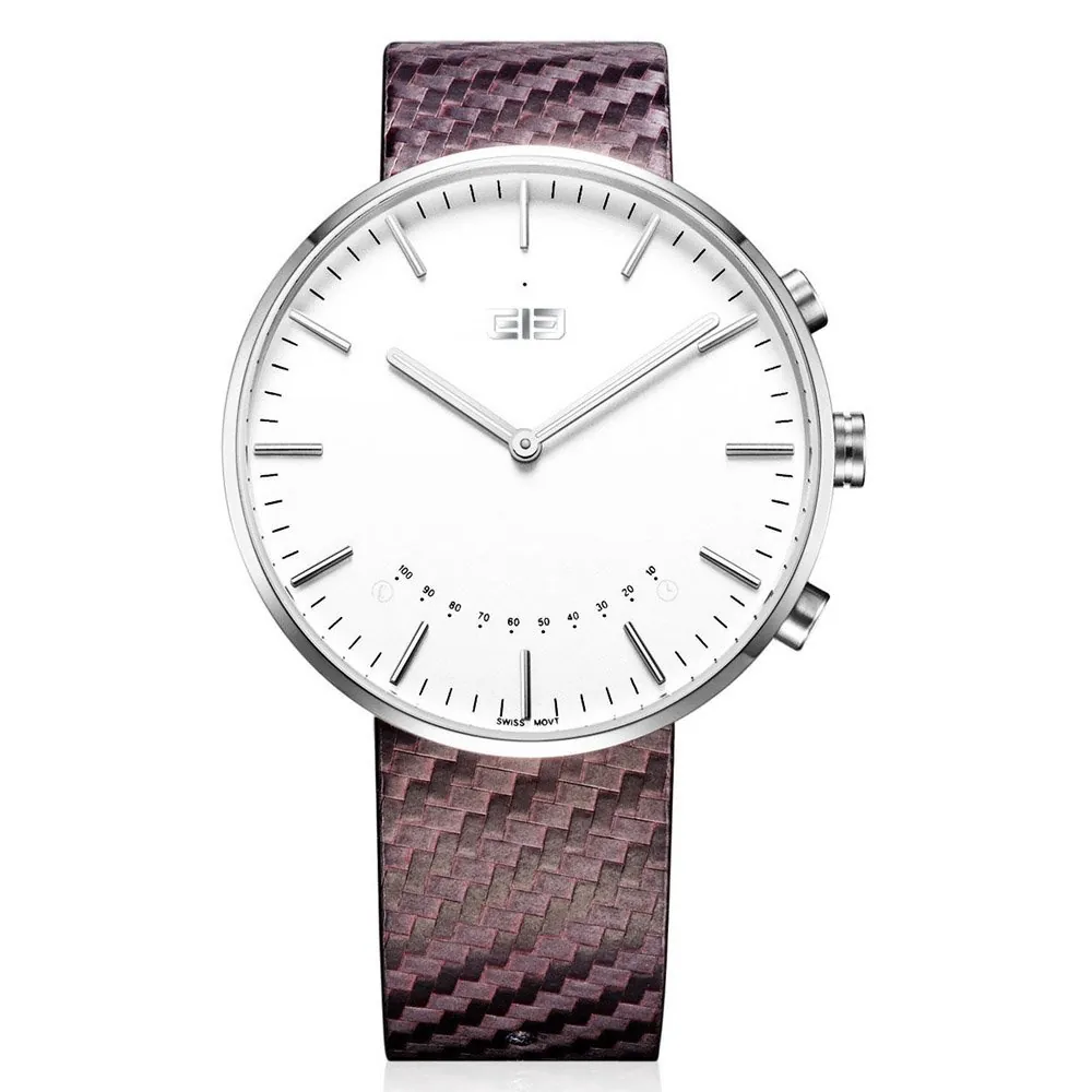 Senza mezzi termini, abbiamo definito Elephone W2 è tra gli orologi classici con funzioni smart più belli; completamente circolare, è costruito intorno ad un quadrante bianco, su cui girano le lancette bianche e argento, oltre a stanghette argentate e piccoli LED colorati in blu, verde e rosso, a seconda che si attivata la modalità giorno o quella notte. Il diametro del quadrante è di 41 millimetri, mentre lo spessore è contenuto in 10,3 millimetri, per un peso complessivo di 130g. L’orologio ha un movimento svizzero Rhonda762, bluetooth 4.0 ed è coperto con un vetro zaffiro. Il cinturino, invece, è da 20mm e l’orologio è certificato per immersioni fino a 30 metri.
