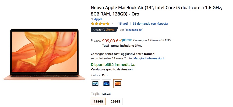 Se volete comprare un Mac al prezzo più basso, andate subito su Amazon. il MacBook Air da 128 GB dopo lo sconto dello scorso week end torna ancora sotto i 1000 euro