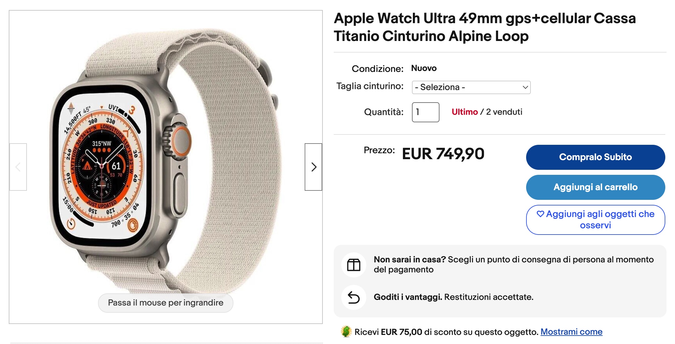 Nei giorni scorsi abbiamo segnalato più volte uno sconto sugli Apple Watch Ultra di prima generazione. Ora torniamo sull’argomento per indicarvi la possibilità di comprare questo eccellente smartwatch, del tutto simile a quello di nuova generazione (diverso solo per alcuni dettagli che potremmo definire inifluenti) al prezzo più basso di tutti i tempi: 674€