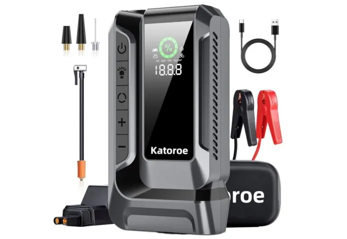 Se la vostra auto ha qualche problema di avvio del motore o se semplicemente avete paura di restare a piedi a causa della batteria, c’è la soluzione servita per voi: il booster a batteria potente e molto funzionale di Katoroe, con compressore integrato, lampada Led e batteria per la ricarica di un dispositivo esterno che costa solo 46,99€ grazie ad uno sconto e ad un coupon sconto