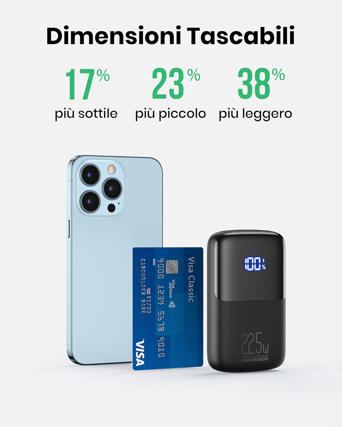 Con 220W è perfetta in particolare per gli ultimi iPhone con porta USB-C ma può essere utile anche per tanti altri scopi. Ad esempio è in grado di far funzionare perfettamente anche un dispositivo Magsafe che richiede come minimo 15W, potenza che non tutte le batterie sono in grado di fornire.