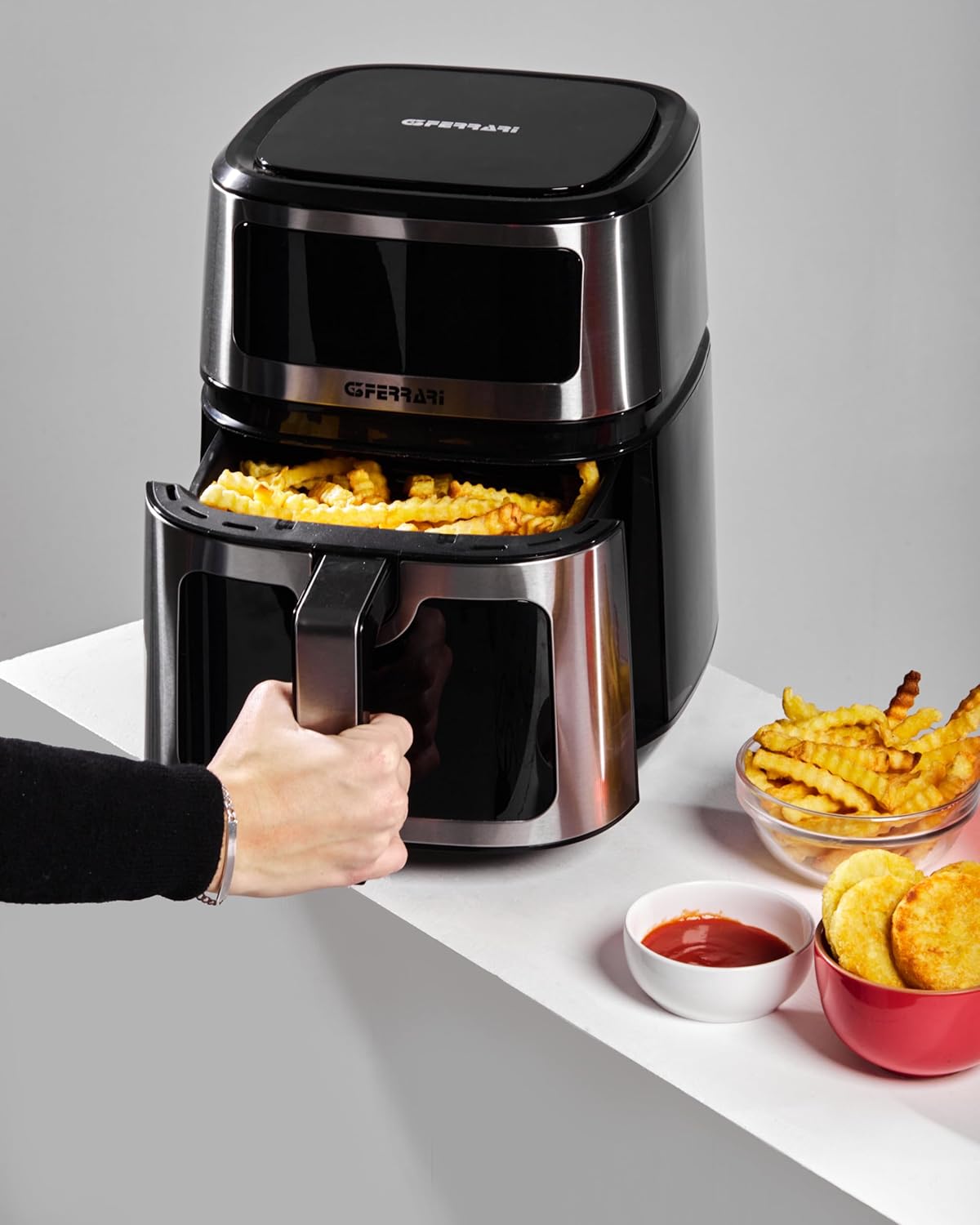 La G3 Ferrari G10171 include 8 programmi preimpostati pensati per alimenti specifici come pollo, pesce, crostacei, patatine, toast e hot dog. Ogni programma imposta automaticamente tempo e temperatura, facilitando l’uso anche a chi ha poca esperienza in cucina. Il risultato è una cottura uniforme e più leggera, senza bisogno di olio.