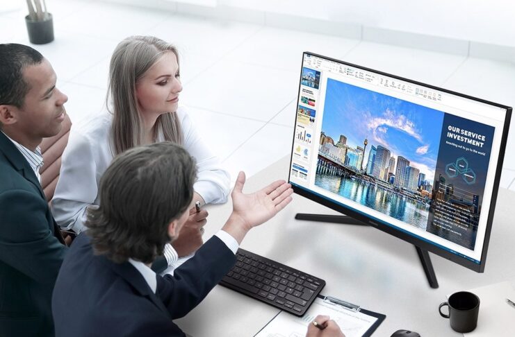Il Samsung S31C si presenta con un design minimalista, schermo senza cornice su 3 lati per un tocco estetico moderno e ordinato a ogni ambiente di lavoro, perfetto per le configurazioni multischermo, nelle quali «I monitor – dice Samsung sembrano fondersi l’uno nell’altro, per una visione continua e senza distrazioni»