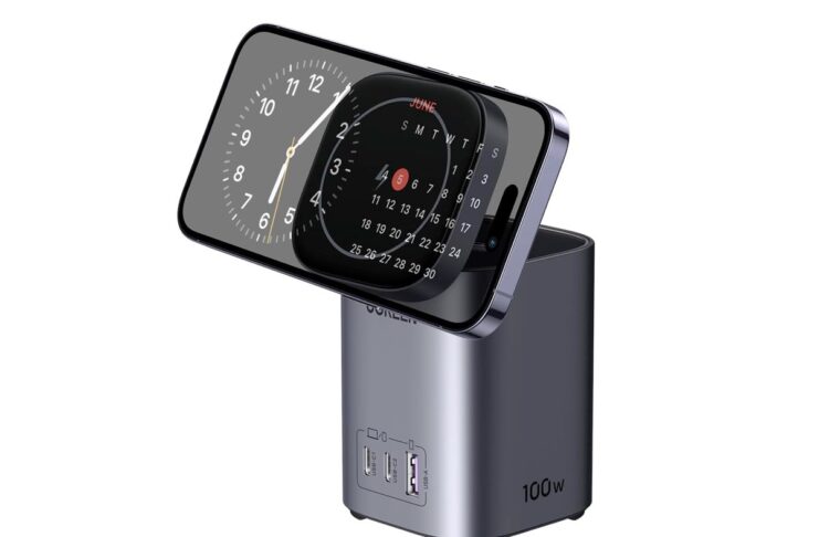 Oltre a questo, però sul supporto abbiamo anche due porte USB-C e una porta USB-A in grado di fornire complessivamente fino a 100W. Le due porte possono trasmettere rispettivamente 45W e 25W, sufficienti per ricaricare, ad esempio, un MacBook Air e un iPad o un altro iPhone.