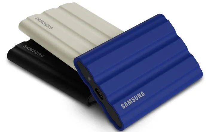 La differenza rispetto al Samsung T7 sta nel fatto che Samsung ha dotato questo disco di una serie di elementi di protezione come la scocca in gomma che lo tutela da cadute fino a tre metri di altezza. In più ha una protezione aggiuntiva contro l’ingresso di acqua e polvere grazie alla certificazione IP65.