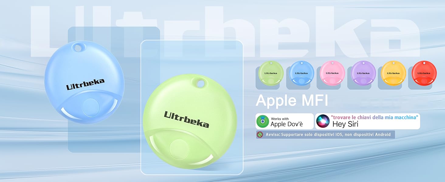 Come nelle altre occasioni parliamo di tag perfettamente compatibili con la tecnologia Apple dov’è. Per sapere che cosa un dispositivo come questo è capace di fare, leggetevi il nostro articolo sugli Airtags, sostituite la parola “Airtags” con “Ultrbeka” (il nome del produttore che presenta l’offerta) e saprete come funziona e a cosa servono.
