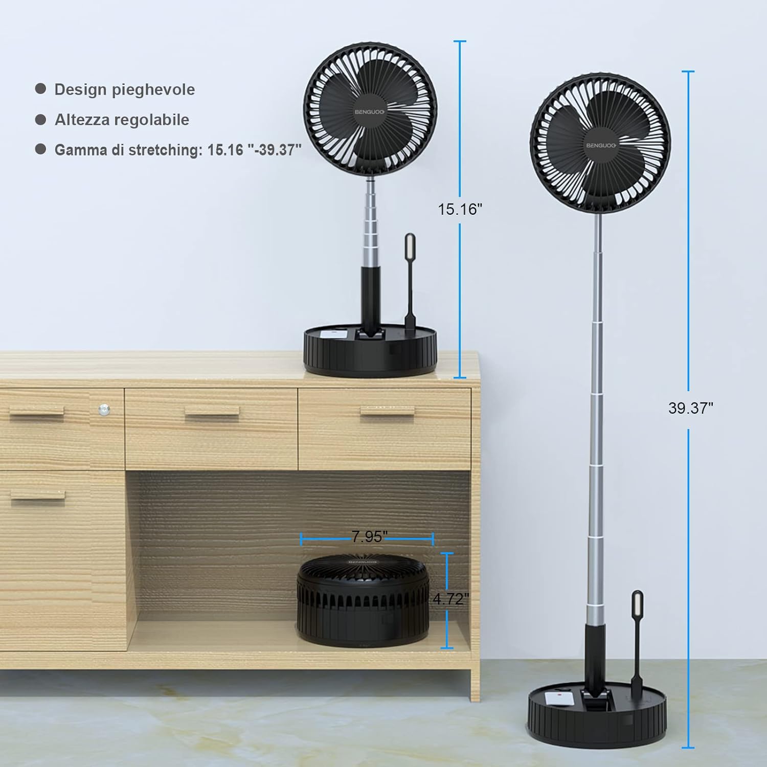 Quello che trovate in promozione è un ventilatore molto simile a tanti altri da pavimento, ma con una eccezione: non ha bisogno di una presa elettrica. Dentro ha infatti una batteria che ricaricate con un normale caricabatterie, tipo quello dei cellulari.