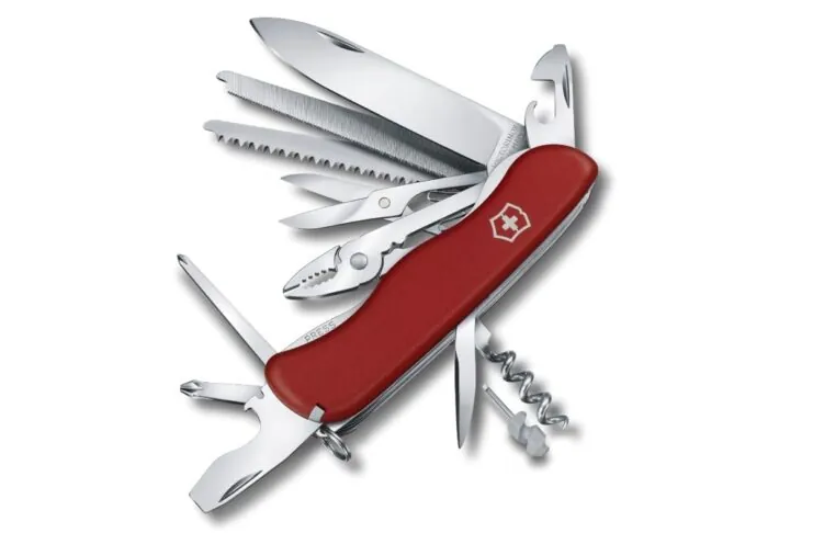 Tra le funzioni integrate ci sono: lama grande, cacciavite Phillips, pinze con tagliafili, seghetto per legno, lima per unghie e metalli, forbici, punteruolo, apriscatole, apribottiglie e spelafili. È pensato per escursionisti, campeggiatori o professionisti che vogliono avere a disposizione un set completo in formato tascabile. Tutti gli utensili sono ripiegabili e accessibili con facilità, mantenendo la classica organizzazione Victorinox.