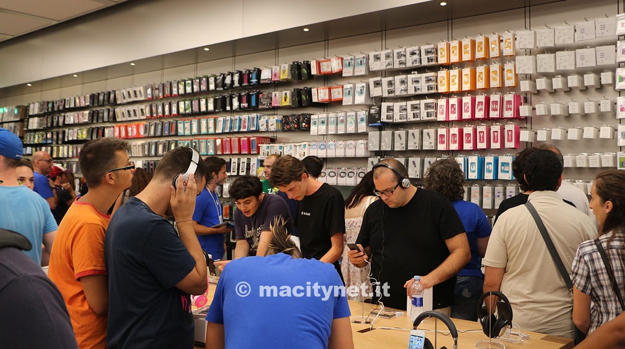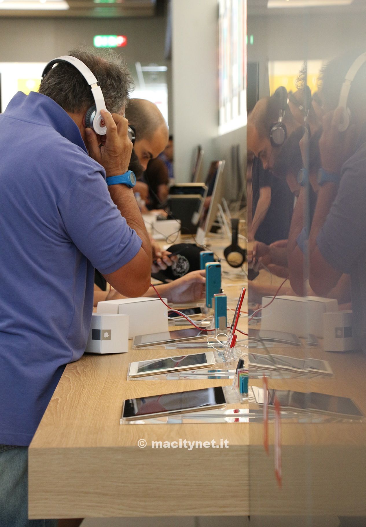 L’Apple Store di Rimini ha due particolarità rispetto a quelli che abbiamo personalmente visitato: una area Genius Bar non addossata ad una parete di fondo ma gestibile sui due lati di un lungo tavolo come avviene a Torino in modo che utente e cliente si posizionino secondo convenienza ed una presenza aumentata di accessori di terze parti che avevamo sempre trovato ridotta rispetto alle aspettative nei negozi come quello di Bologna che pure ha un generoso secondo piano.