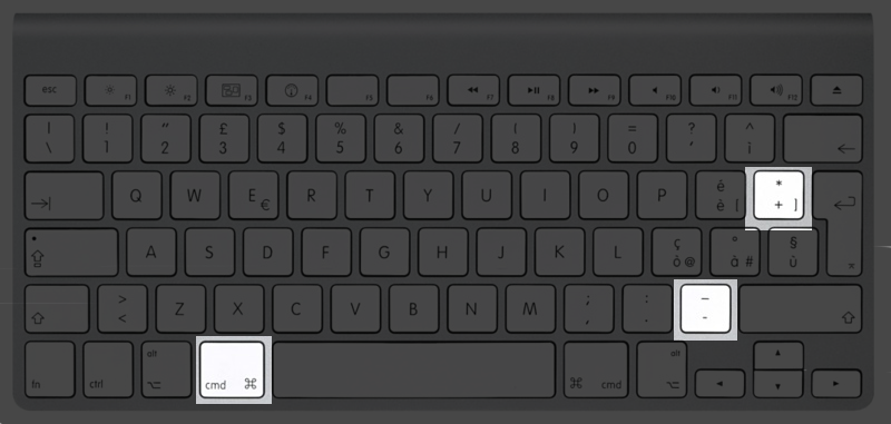 2. Aumenta/Diminuisce dimensioni caratteri – Cmd + Tasto “Più” o “Meno”