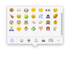 Durante la composizione della mail potrebbe essere necessario inserire emoticon e caratteri speciali non raggiungibili da tastiera. Con la sequenza ctrl+cmd ⌘+barra spaziatrice sarà possibile richiamare una particolare finestra dalla quale scegliere emoticon e caratteri speciali da inserire all’interno del proprio testo.