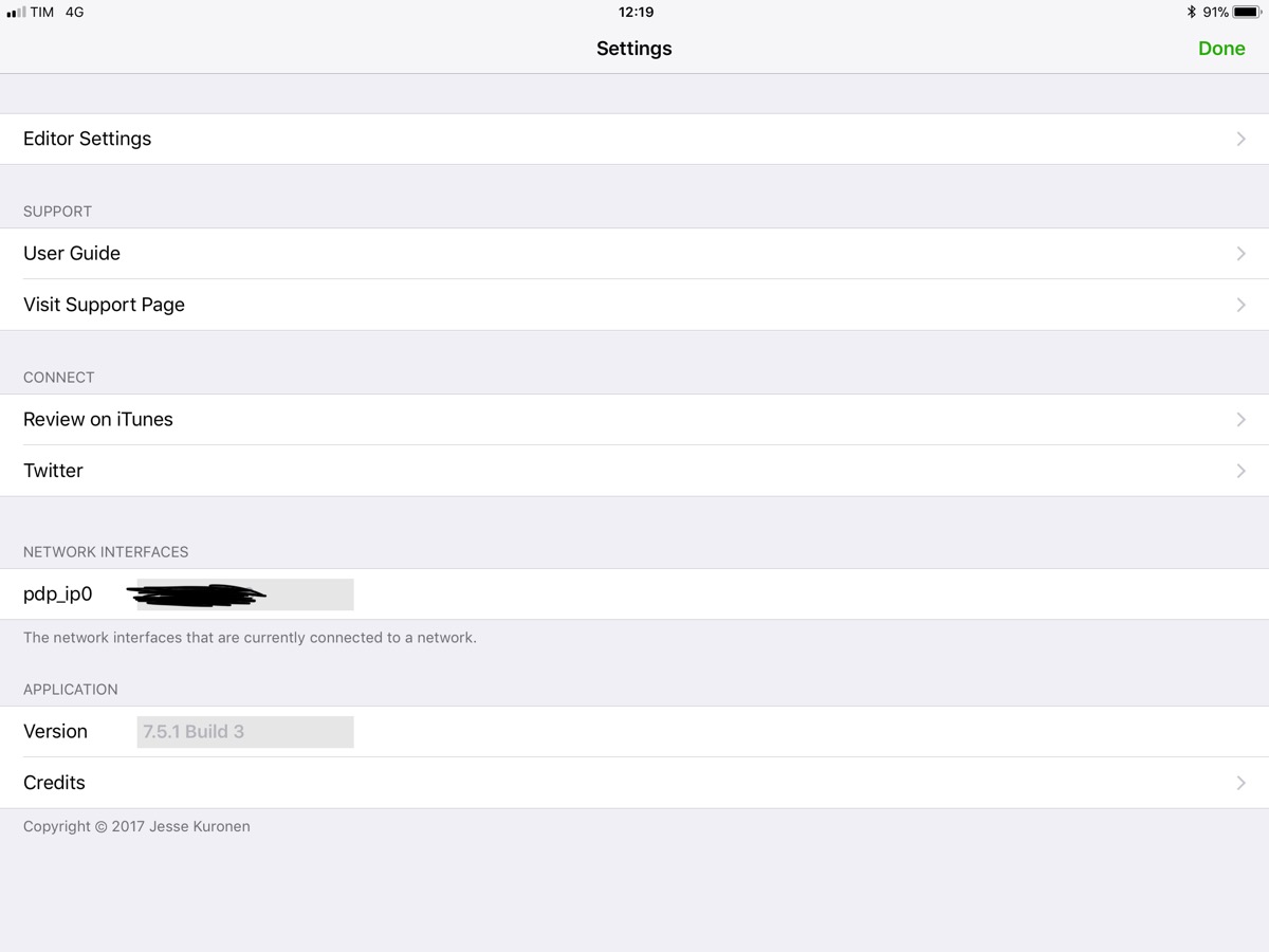 L’app costa 4,99 euro e viene sviluppata da Jesse Kuronen. È il classico progetto portato avanti da una persona (uno sviluppatore di giochi e l’utile PipTube, l’app per fare picture in picture con i video Youtube) e si tratta di un ottimo progetto. È un editor di testo particolarmente potente che, negli ultimi tempi, ha aggiunto una serie di funzionalità che lo rendono ancora più completo. Tra questi, la connettività con SFTP, FTP, SSH e i principali servizi BitBucket, Github, GitLab. Con questi servizi è possibile fare Branch, Clone, Commit, Push, Pull in modo nativo, senza dover comprare altre funzionalità (cosa invece comune ad altre app).