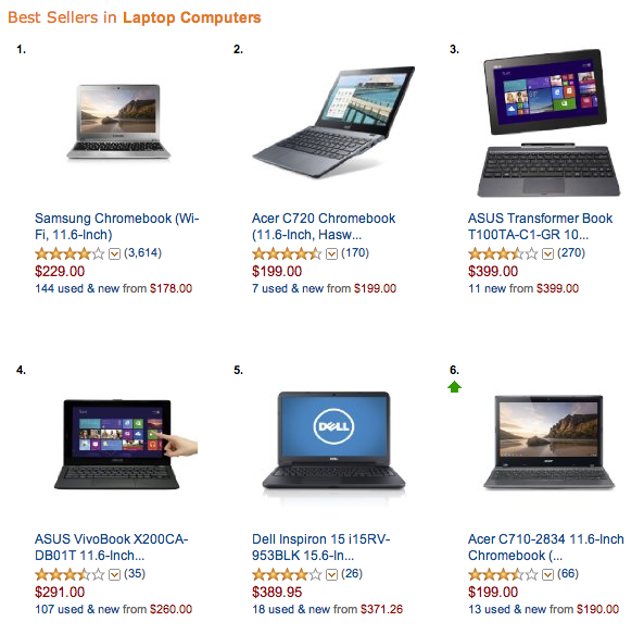 Basta collegarsi ad Amazon.com per osservare qualche dato reale: nel momento in cui scriviamo, nella top 6 dei laptop più venduti i primi due posti sono occupati proprio da due Chromebook, oltre alla sesta posizione. I Chromebook sembrano ormai aver trovato il loro spazio sul mercato e da quest’ultimo spot si deduce che anche Microsoft sembra essersene accorta.